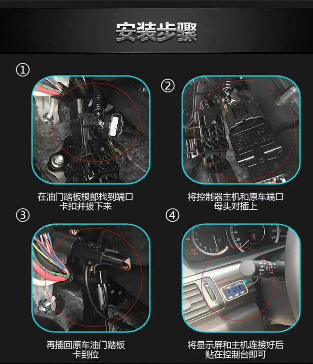 所以我们的产品是专车专用的,即插即用的;一般车型无须使用工具,徒手安装只要几分钟,也不用破坏原车结构,安装上去不用调试,马上就可以体验明显的提速改善变化效果。