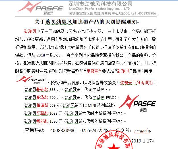 谨防假冒 望广大车友在购买【劲驰风】加速器时 请认准【劲驰风】品牌