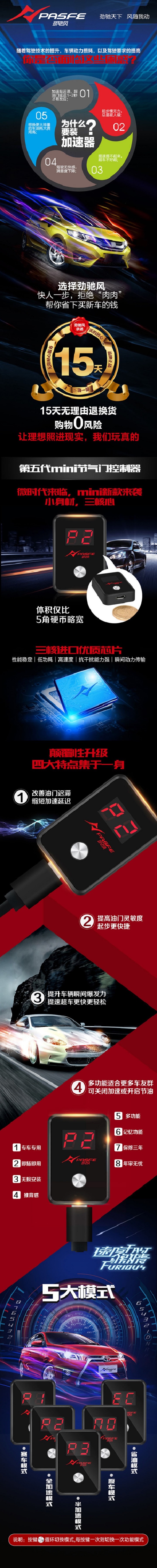 答:看个人爱好,全加速模式有明显的推背感和胎响,对喜欢速度感的车友来说比较适合;半加速模式则没有明显的推背感,但仍然可以消除油门迟滞,适当改善原车提速效果。全加速提速迅猛,会带来强烈的推背感,适合飚车;半加速提速效果为全加速的一半,使油门操控灵敏,适合于日常驾驶