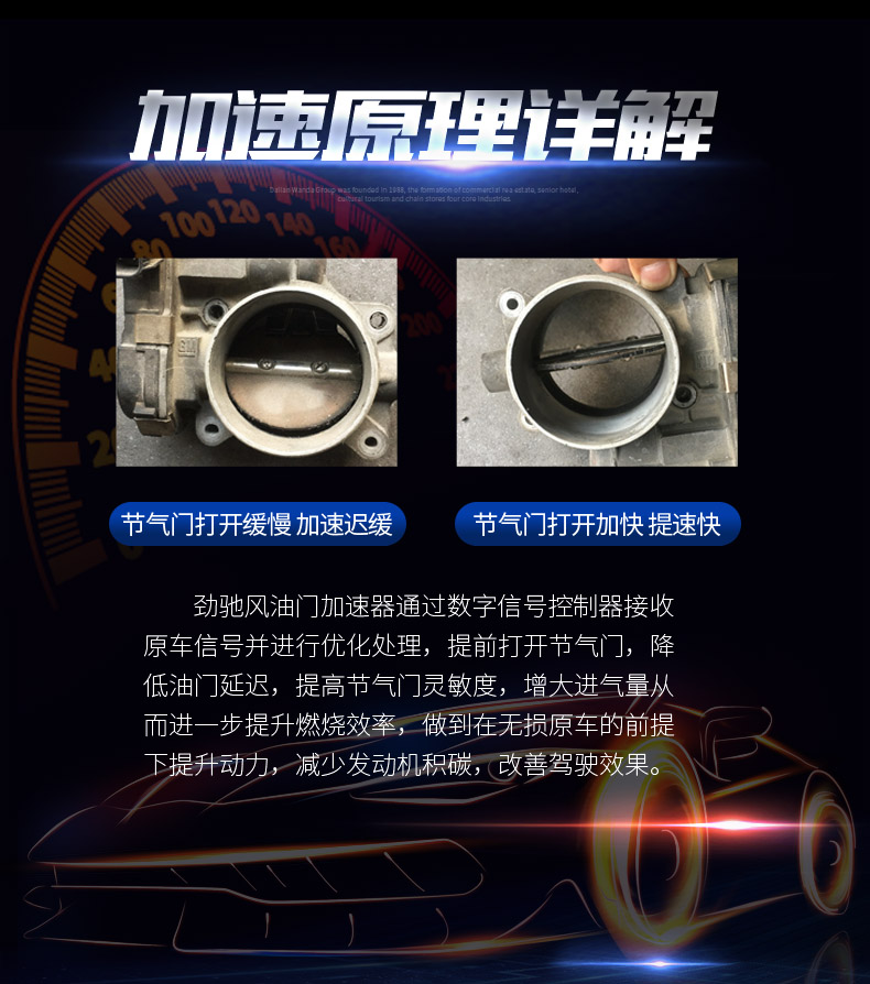 答:看个人爱好,全加速模式有明显的推背感和胎响,对喜欢速度感的车友来说比较适合;半加速模式则没有明显的推背感,但仍然可以消除油门迟滞,适当改善原车提速效果。全加速提速迅猛,会带来强烈的推背感,适合飚车;半加速提速效果为全加速的一半,使油门操控灵敏,适合于日常驾驶