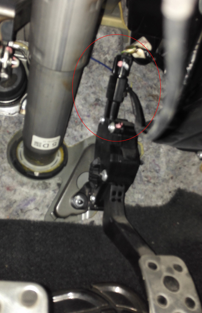 1.在油门踏板处找到安装位置并拔下原车端口---》2.串联上加速器主机--》3.再插回原车位置--》4.走好连接线,把控制屏用自带的3M胶固定在方向盘左右方便使用的地方,即完全安装