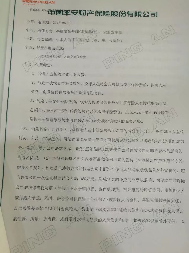 热烈祝贺劲驰风科技系列产品由"中国平安公司承保''