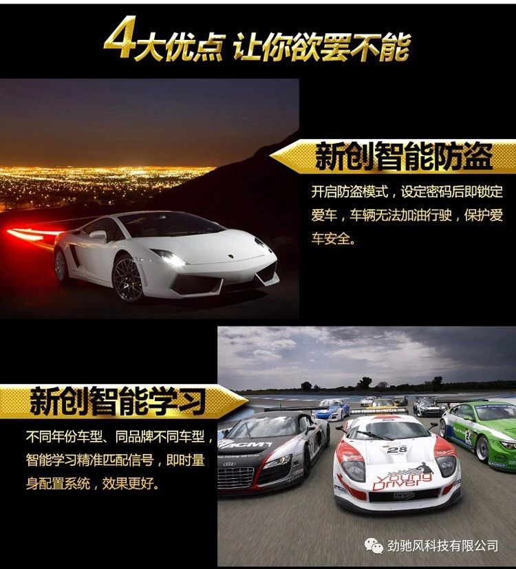 劲驰风电子油门加速器(又名节气门控制器)是一款专车专用的一款产品,是专门为喜欢激情驾驶的人们所设计,是喜欢激情、个性化车友的必备品。本产品主要通过控制汽车节气门的开合灵敏程度来改善汽车的的操控性,使其更好的适应不同人群的驾驶习惯和不同的行车路况,使用本产品后可以减少汽车电子油门存在的延迟现象,提高油门灵敏程度,使汽车起步和加速更快,让你更好的感受驾驶乐趣!