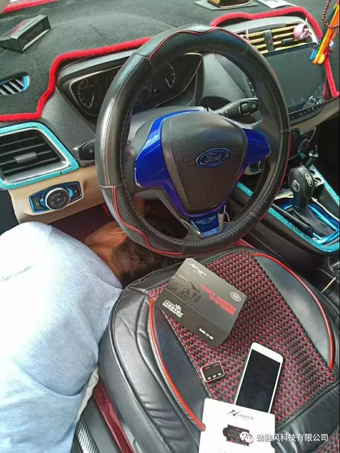 福睿斯车主自驾爱车来到公司楼下,加装劲驰风第八代电子油门加速器体验动力改善效果。