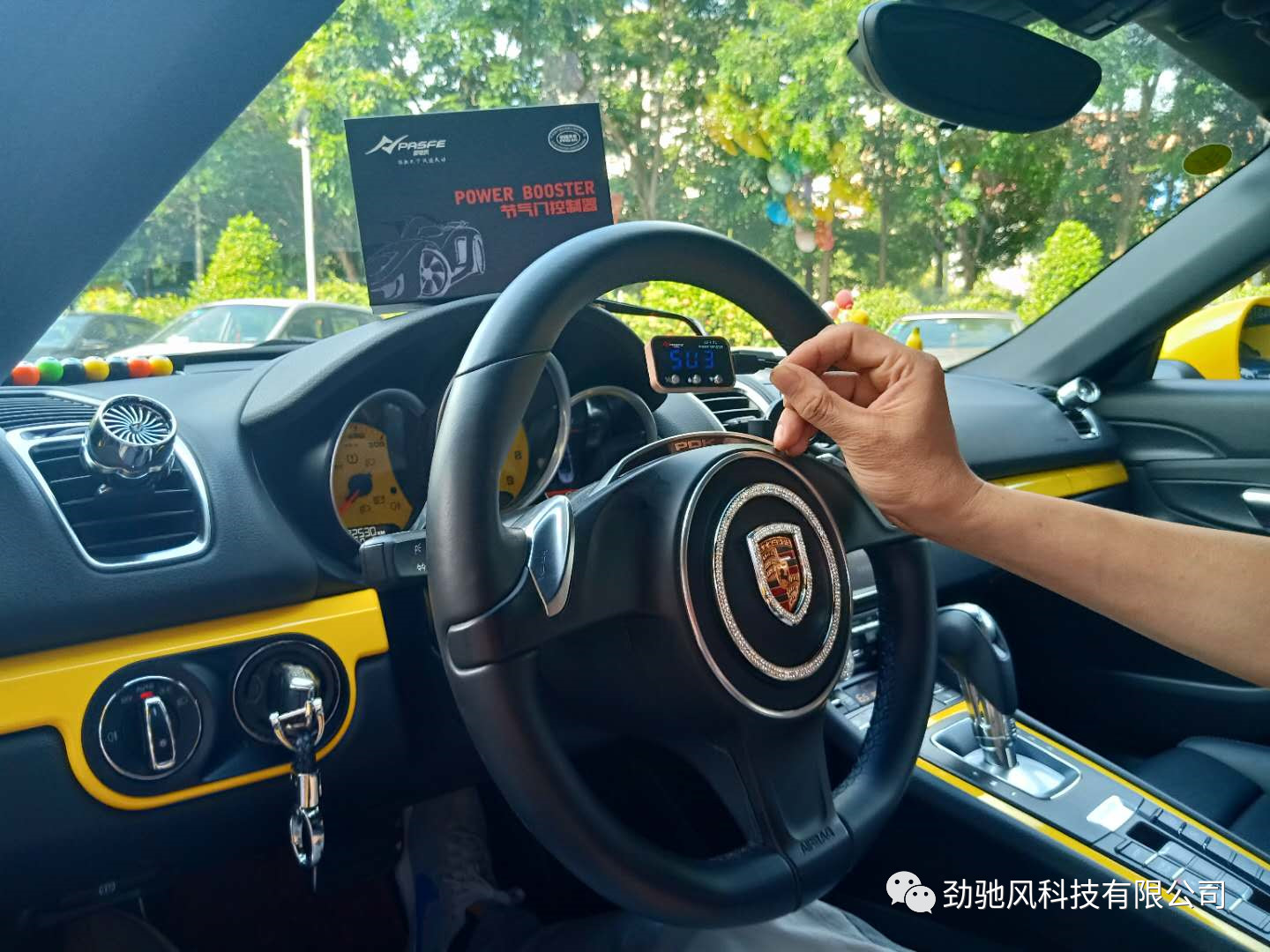 保时捷981车主自驾爱车来到公司楼下,加装劲驰风第八代电子油门加速器体验动力改善效果。