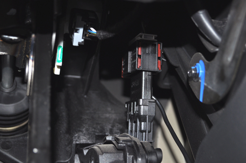 从油门踏板根部找到安装位置,红色就是端口,轻轻一拉红色面板就可以取下来了